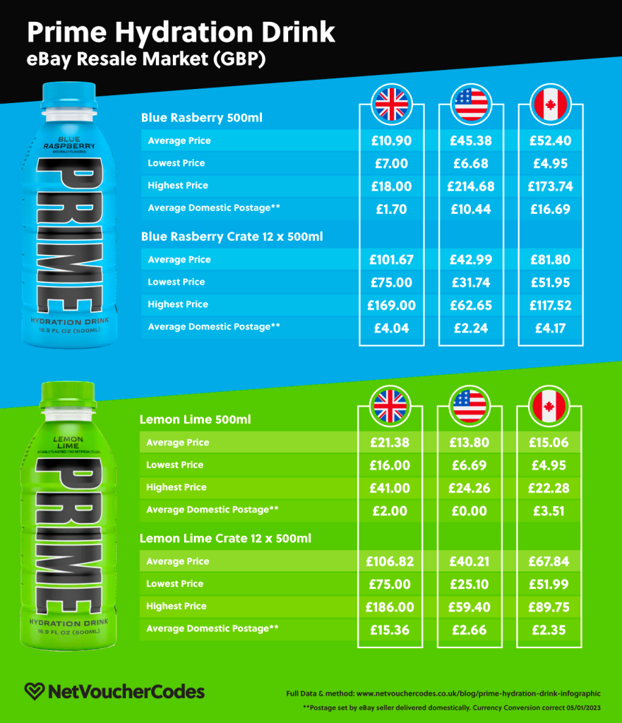 For Brits who do have an eye for a bargain, the Lemon and Lime flavour is cheaper to buy from sellers in the USA and Canada. The average price in the UK is £21.38 but in the USA is just £13.80 – that’s £7.58 cheaper – and in Canada £15.06 or £6.32 less.